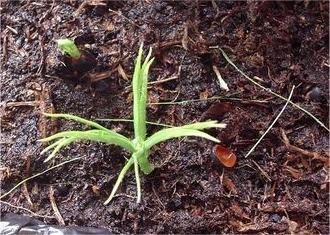 средне или легкосуглинистых почвах. Землю заблаговременно (хотя бы за две недели) перекапываю, тщательно очищая от сорняков, и даю осесть. Потом по поверхности грядки рассыпаю 3-5 сантиметровый слой «вересковой земли», т.е. верхнего слоя супесчаной лесной подстилки, взятой из соснового леса. Семена сею на эту подушку, просто раскладывая их по поверхности с плотностью — штука на сантиметр. Сверху присыпаю той же вересковой землей слоем в 1-3 см. Вересковая земля содержит необходимую проросткам грибную микоризу, симбиоз с которой предохранит их от воздействия вредной микрофлоры.